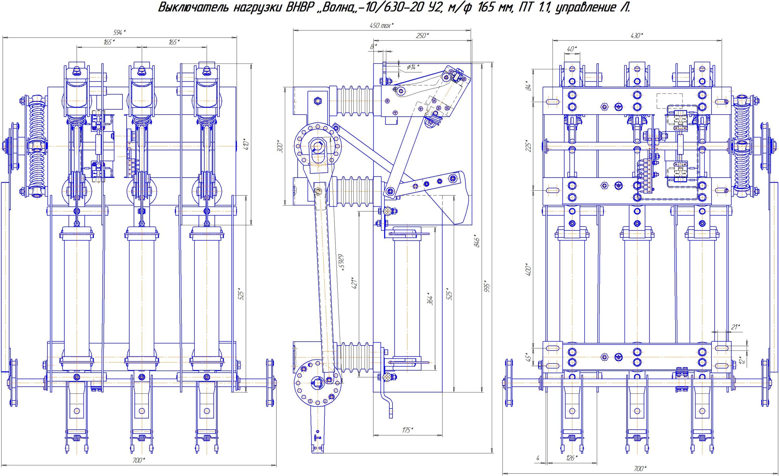 Вакуумный выключатель нагрузки ВНВР “Волна” -10/630-20 У2, м/ф 165 мм, ПТ 1.1, управление П является коммутационным устройством. Он предназначен для контролируемого включения или отключения электрических цепей в режиме нагрузки. Работа устройства основана на размыкании и замыкании контактов с обеспечением требуемых изоляционных расстояний. Конструкция рассчитана на стабильную коммутацию номинальных токов без повреждения контактной группы. Аппарат не предназначен для отключения токов короткого замыкания и используется совместно с защитными устройствами.